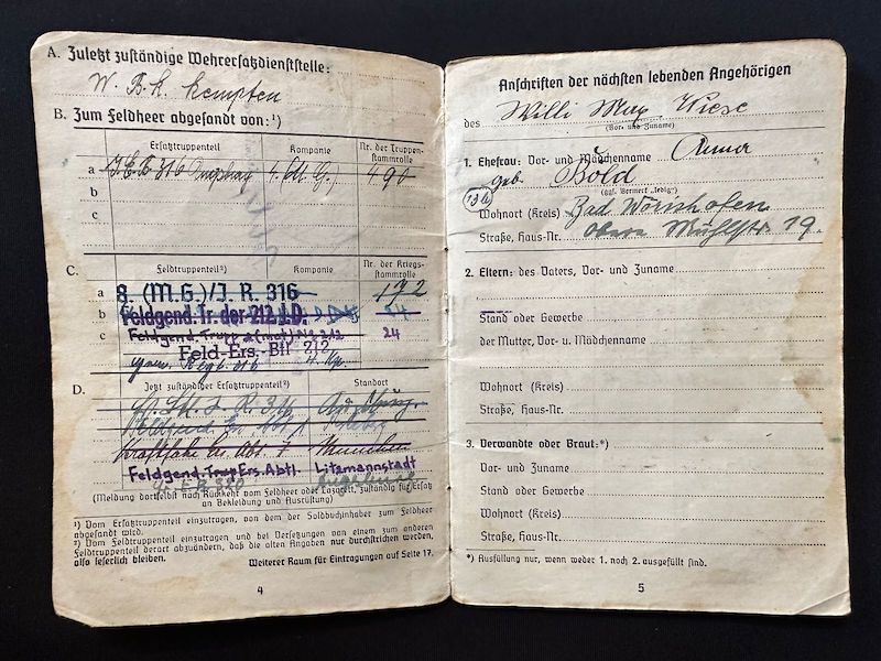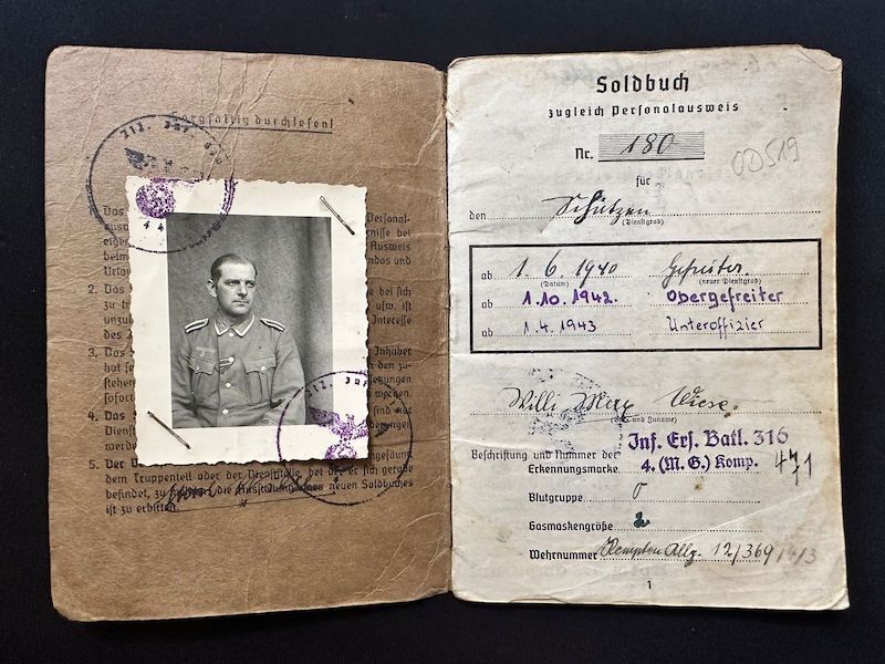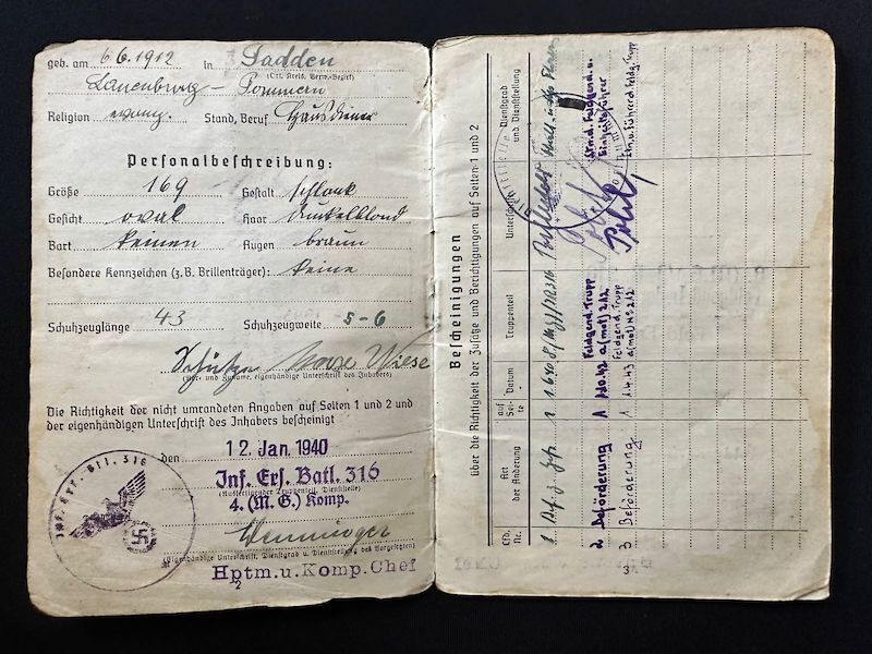 Soldbuch opened in Jan 1940, to Willy Max Wiese,