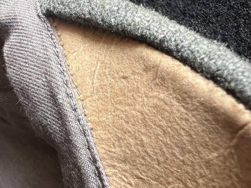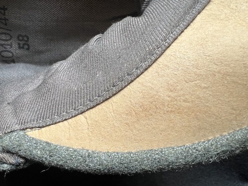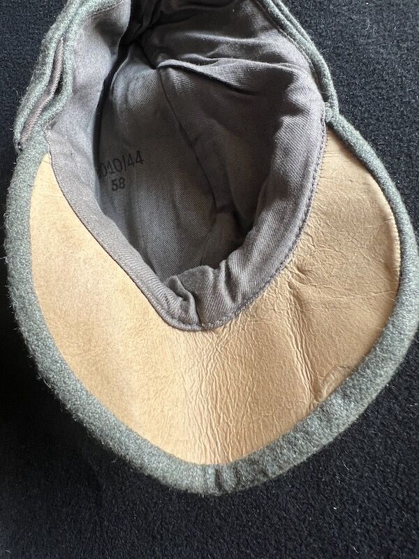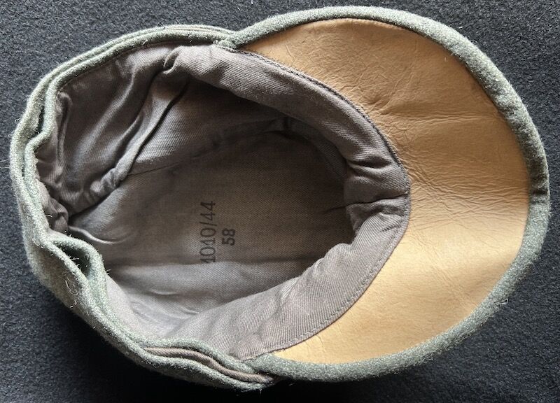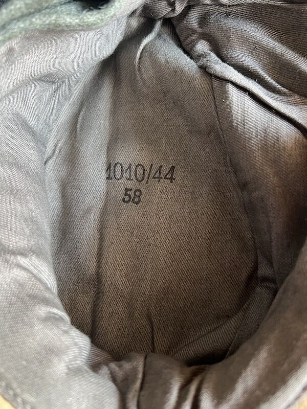 This is a wonderful issued M43 SS, in a rarer pattern for these 1010/44 (Dachau) from my research his version with the white inside of the visor is not a common model/production run.