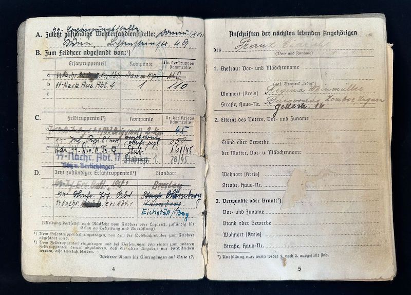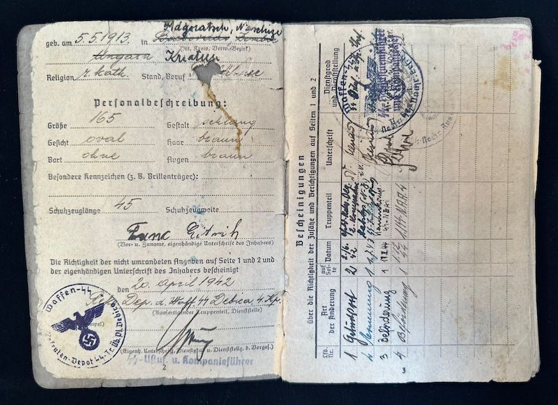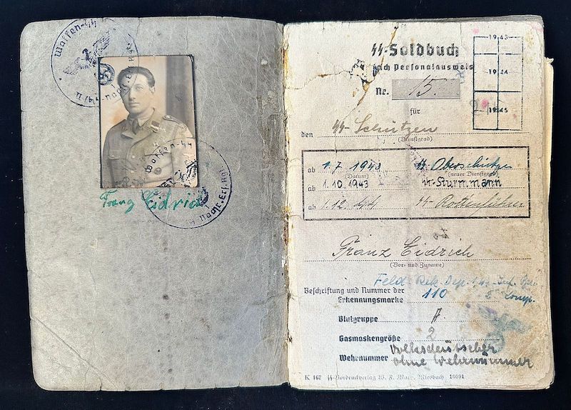 Issued to Franz Eidrich, a Volksdeutche living in Hungary at the time of enlistment.