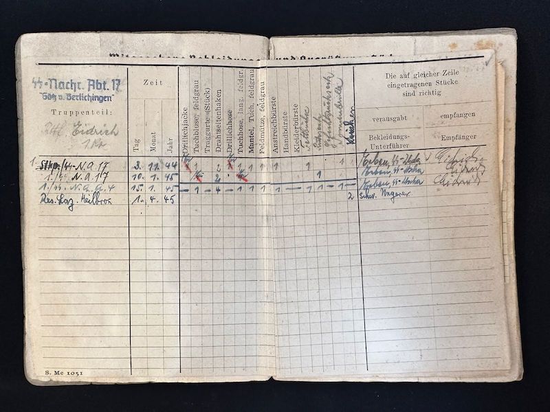 Late 1944 early 1945 he was assigned to the Stab of the SS Nachrichten Abt 17 – 17th SS Panzer Grenadier Division “Götz von Berlichingen”