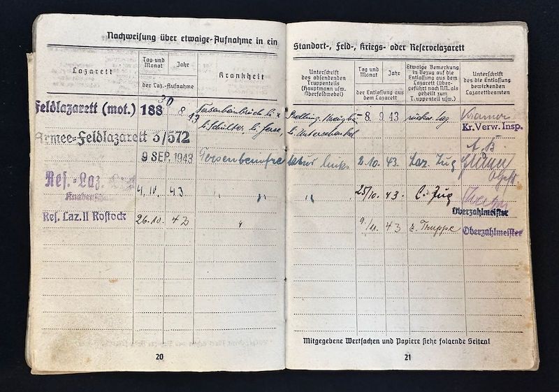 Eidrich was wounded just before the outbreak of the Battle of Heilbronn likely fighting elements of the US Army 100 Inf Division. A small entry in the equipment pages states he arrived at the hospital on the 1.4.1945 in Heilbron.