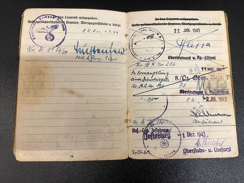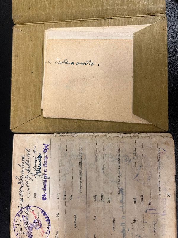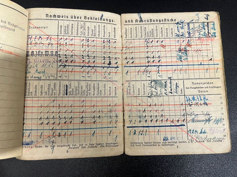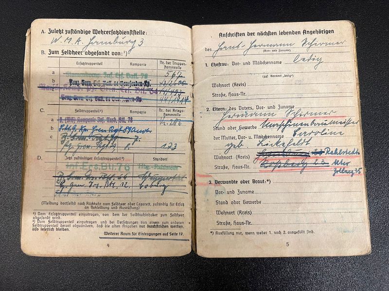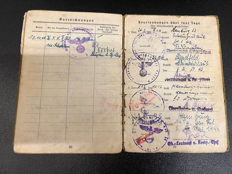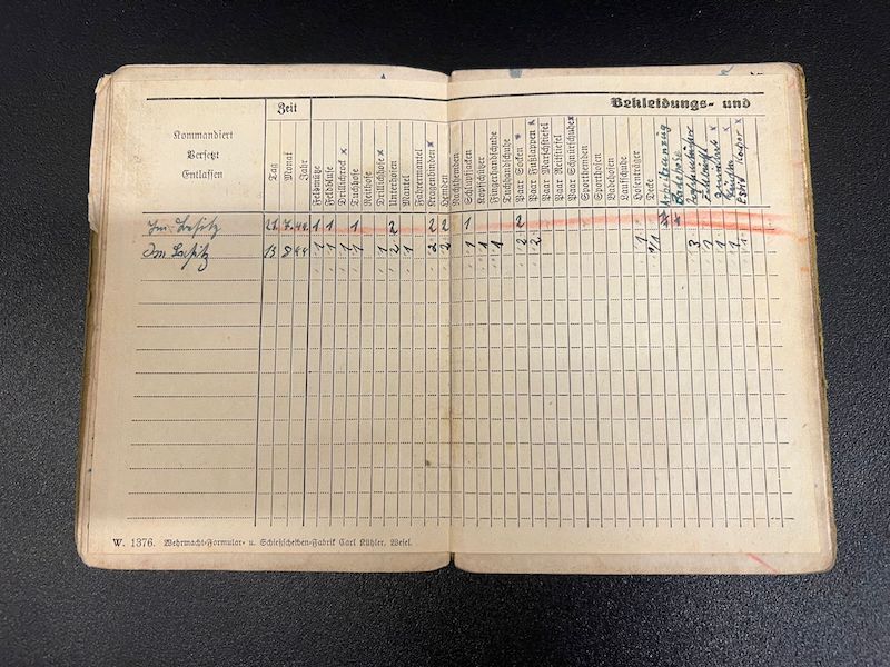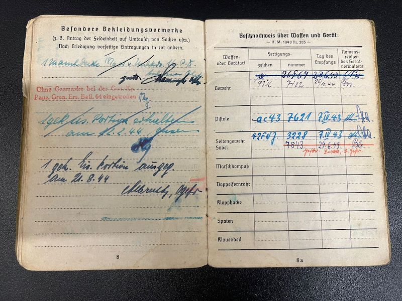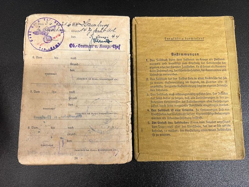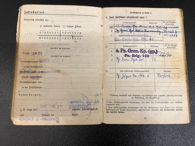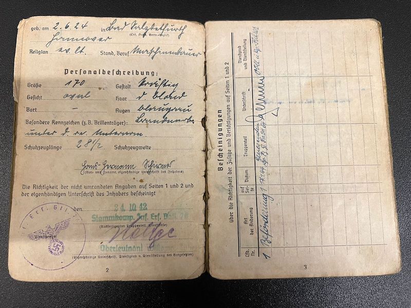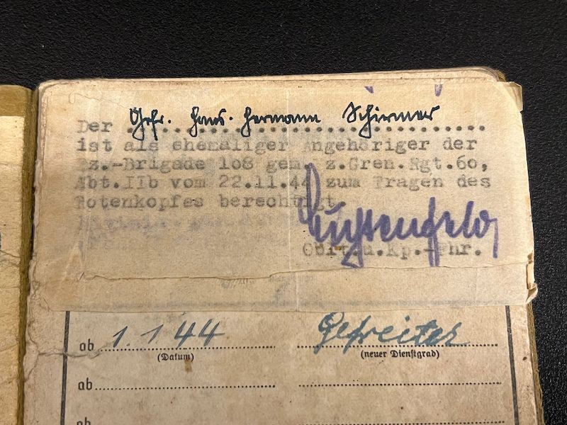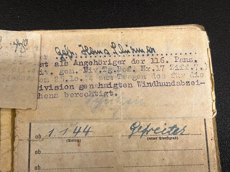 WWII German Wehrmacht Soldbuch – Gefreiter Schirmer – Panzer Brigade 108 – 116 Panzer Division Windhund – With Cap Insignia Paper – Holland 1944 – Aachen – Rare