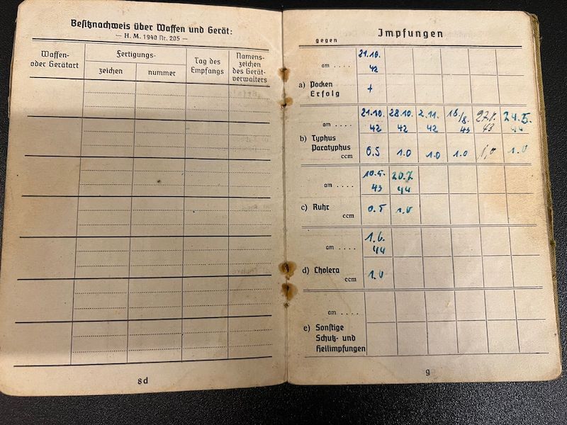 What is amazing about this Soldbuch is the two extras added into page 1 allowing him to wear the following special insignia: