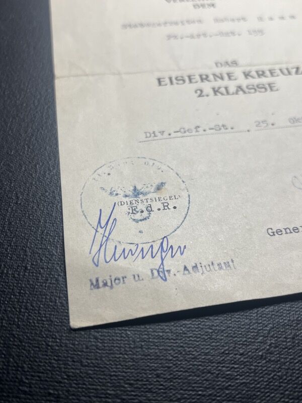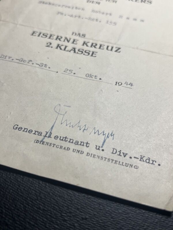 28.10.1944 – Iron Cross Second Class 2nd – Signed by Generallt – Feuchtinger (2)