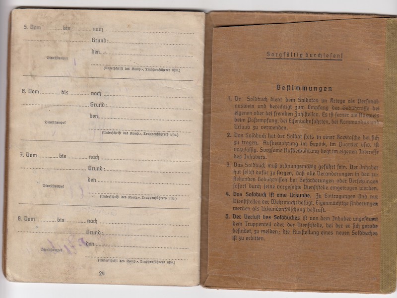 Soldbuch opened in Feb 1943 in Spremberg