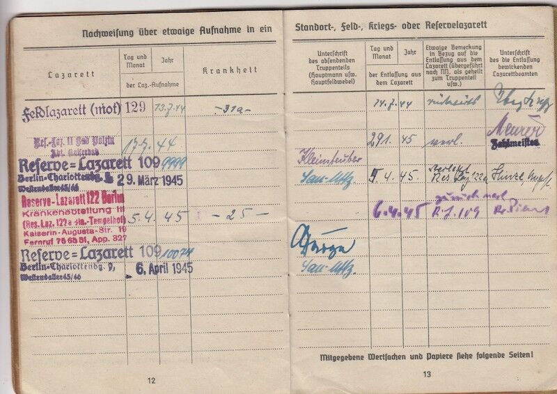 He was sent to: Reservelazarett 109 Berlin, Berlin-Charlottenburg, Westendallee 45