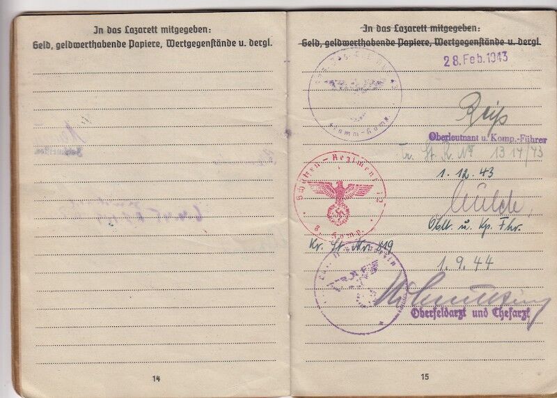 In July of 1944, he was hit with a bullet (Russia) and would be sent to a hospital in the rear.