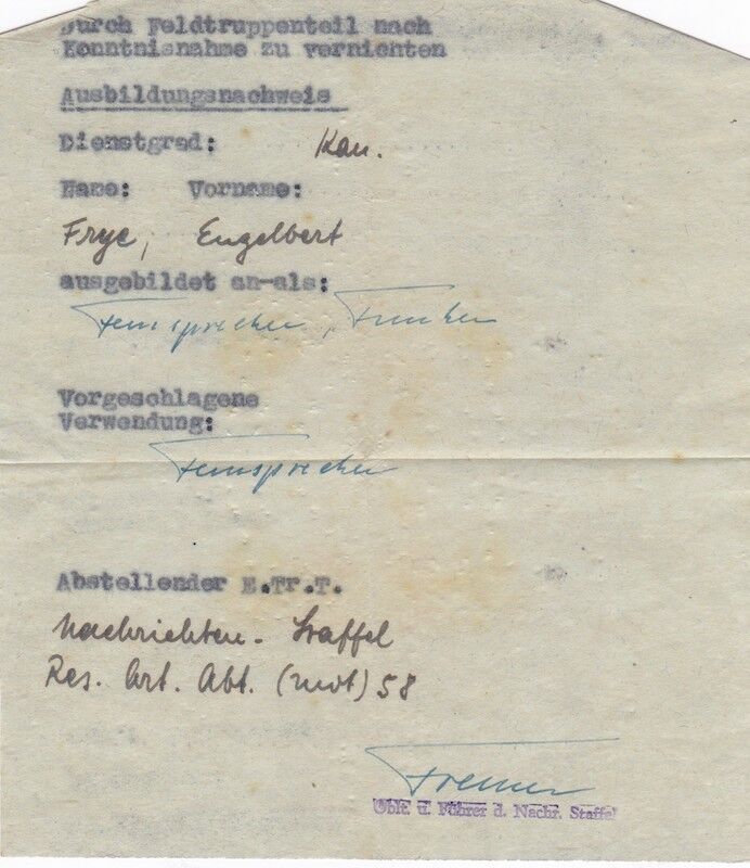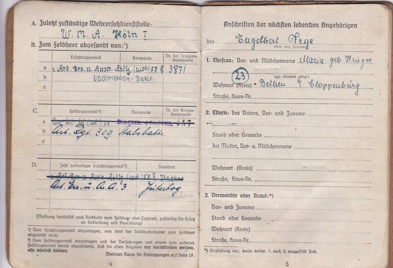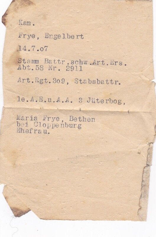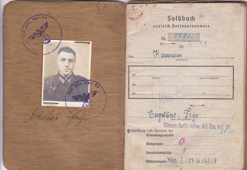WWII German Wehrmacht Soldbuch ID – Kanonier Engelbert Frye – Artillerie Regiment 309 – Infanterie-Division “Berlin” – Küstrin & Halbe Kessel 1945