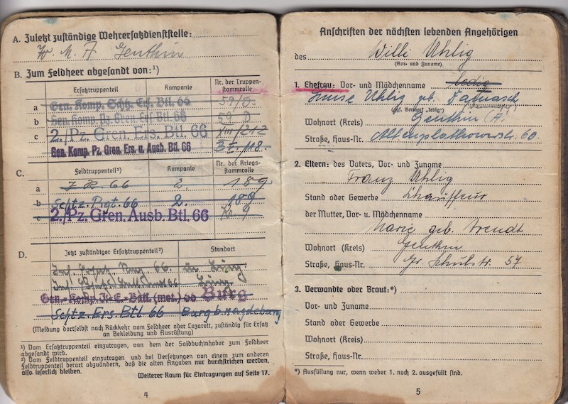 WWII German Wehrmacht Soldbuch – Stabsgefreiter Uhlig – Führerbegleit Brigade (FBB) – MP44 – Fought in battle of the Bulge at St Vith & Bastogne !!