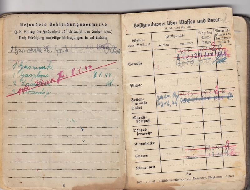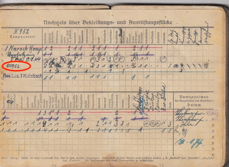 He was trying to hide his unit by removing page 17, although he did not hide his Feldpost Number: 05952