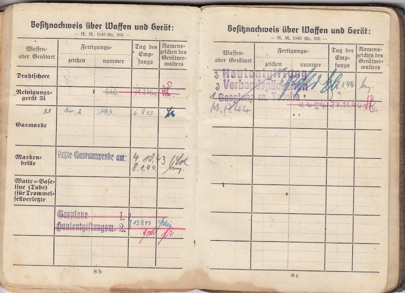 But on closer inspection he was assigned to the 6. Kompanie, Grenadier Führer-Grenadier-Brigade . He was issued many interesting items, including a MP44 in November 1944 as well as Iron Rations.
