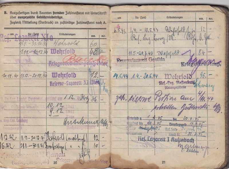Hospital stays: he was suffering from an Accident (34) in 1940, in 1941 winter he arrived in hospital again with (31c) Burns.