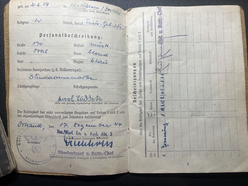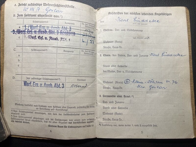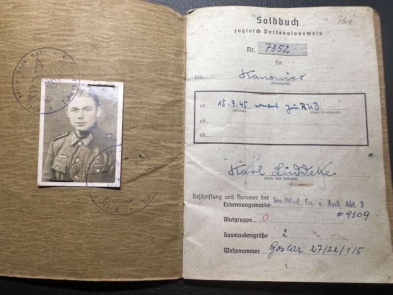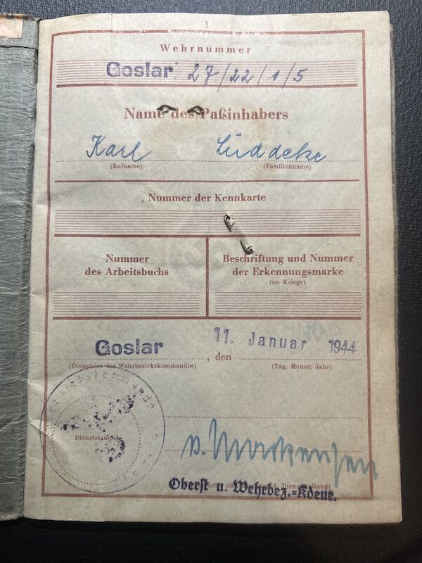 Karl Lüddeke was born in Goslar 1927, his Soldbuch was issued in December 1944.