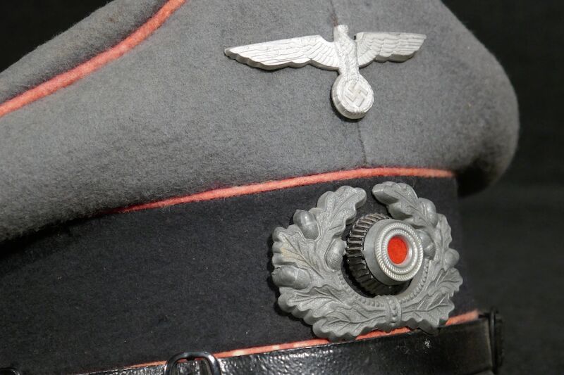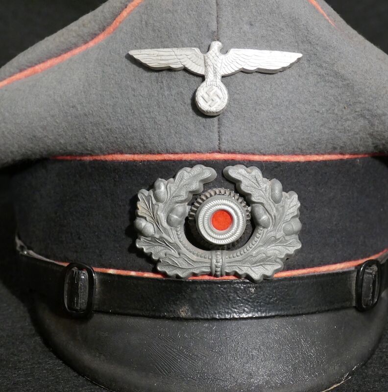 WWII German Wehrmacht Visor Cap – Named Kanonier Guth – H.L.S Potsdam Berlin – Panzer – Original