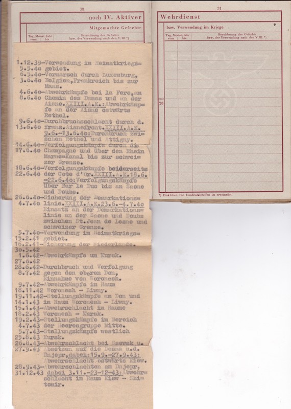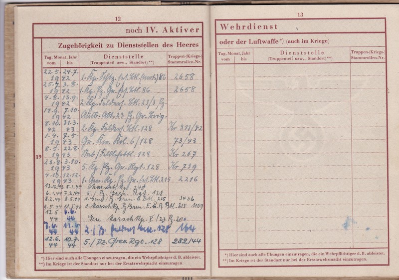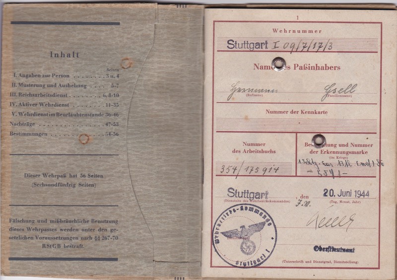 WWII German Wehrmacht Wehrpass – Gefeiter Gsell – Panzer Grenadier Regiment 128 – 23 Panzer Division – Panzer Assault Bronze – KIA Jassy Ukraine 1944