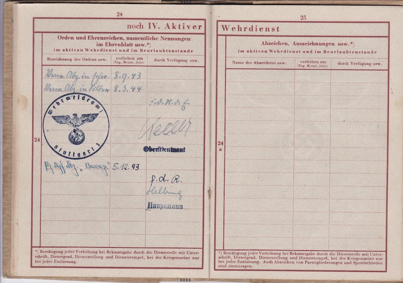 Awards: Wounds Badge in Black, Wounds Badge in Silver, Panzer Assault Badge in Bronze