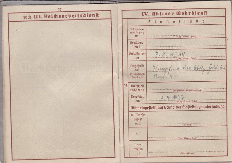 He served in the First World War – fighting on both West and Eastern Front (1915 Argonnen, 1917 Russian Front, 1917 Aisne, Champagne, 1918 Verdun, France. He was wounded also twice – first time in September 1915 in the head area. Then again in 1918 – due to an aircraft dropping a bomb, he sustained multiple wounds on his arm.