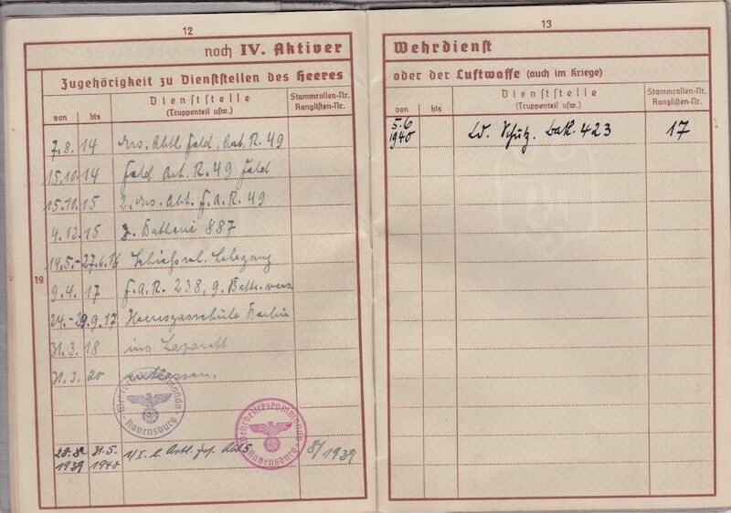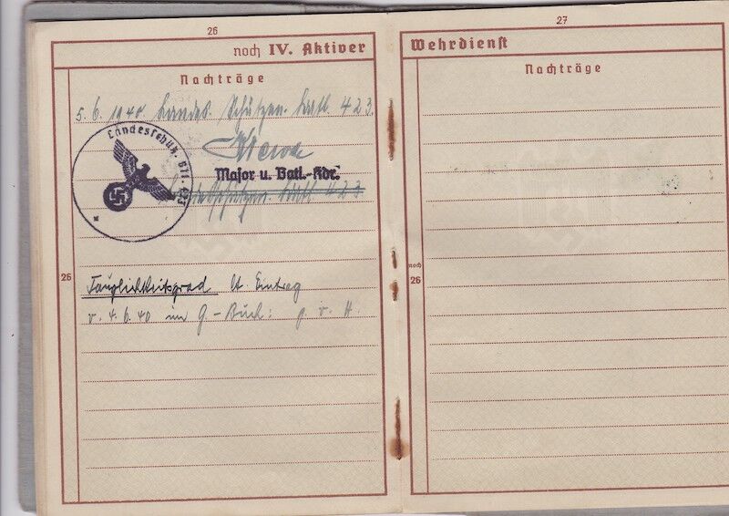 WWII German Wehrmacht Wehrpass ID – Hauptmann Götz – Landesschützen Batl 423