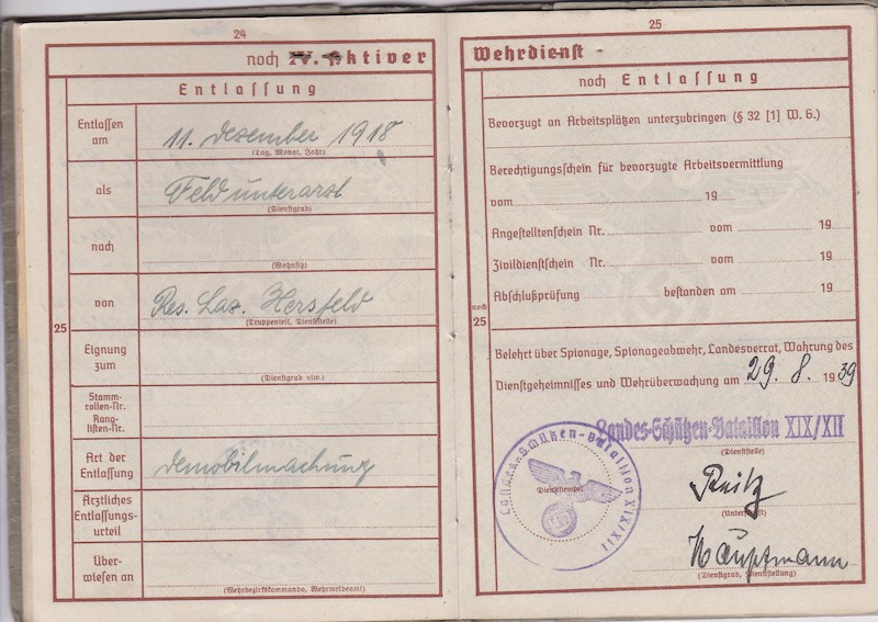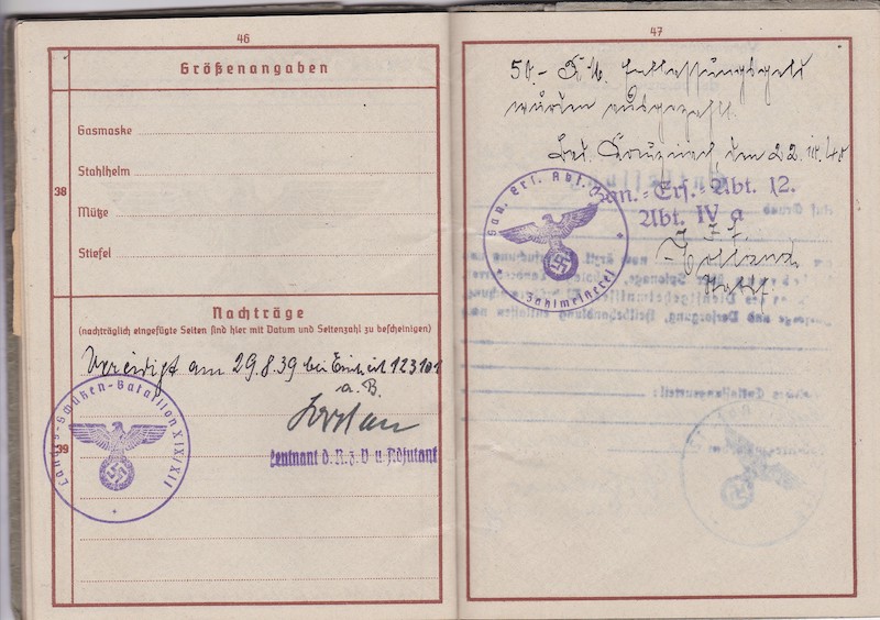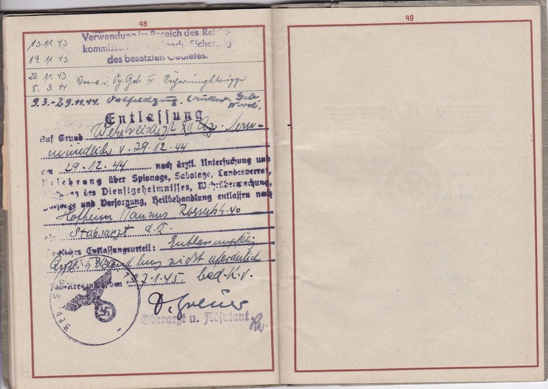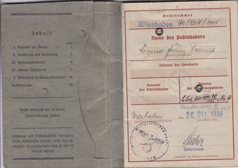 WWII German Wehrmacht Wehrpass ID – Stabsarzt Ternus – Stalag 350 – Salaspils Riga – Kriegslazarette Abt 532 – Lithuania 1944 (Zakret-Wilna)