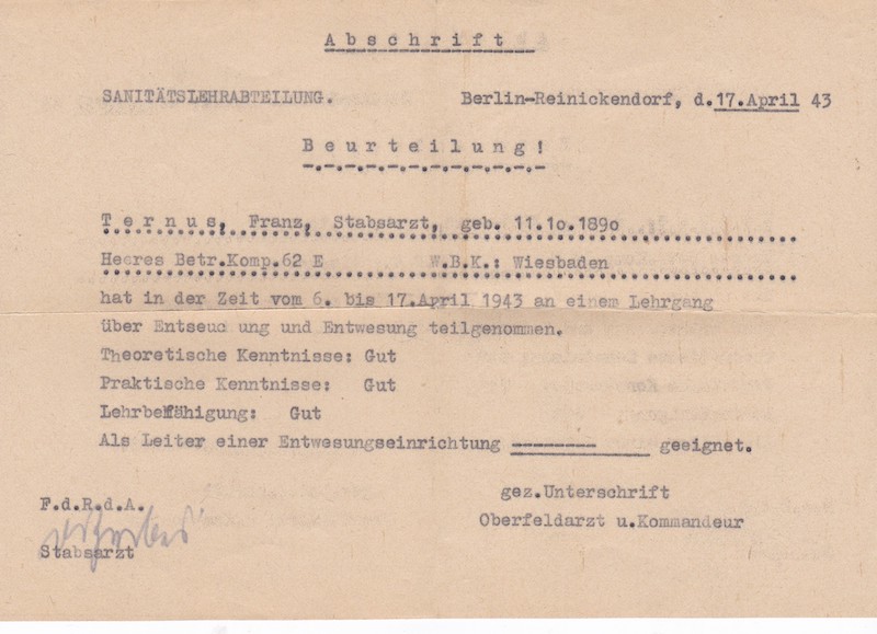 Ternus was a Doctor, reaching the rank of Stabsarzt!