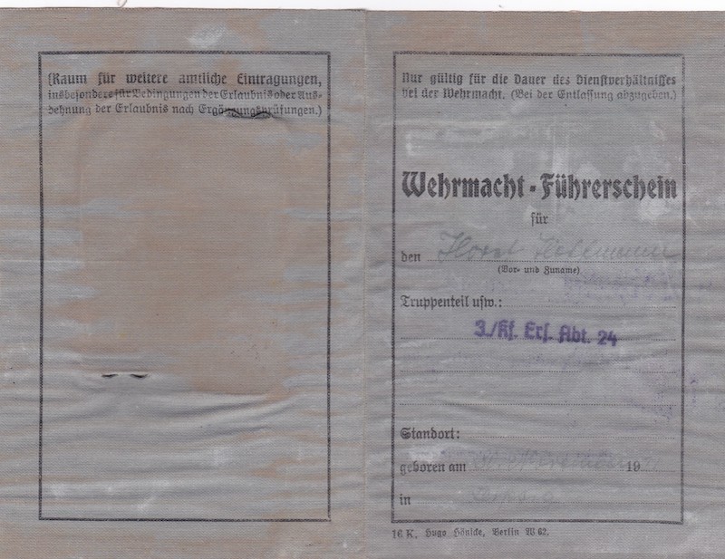 Comes with his Wehrmacht Drivers Licence.