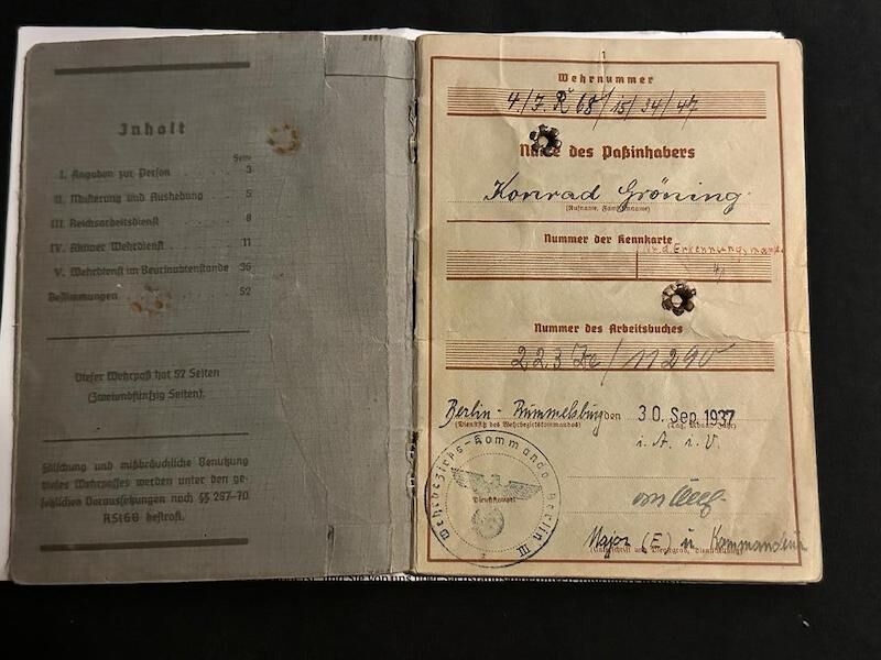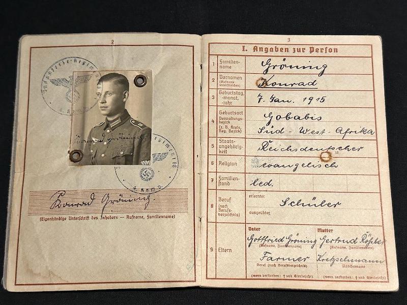A very interesting Wehrpass to Konrad Gröning born in Africa (Gobabis, South West Africa) in 1915.