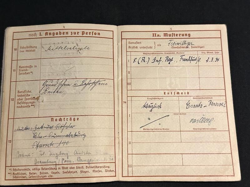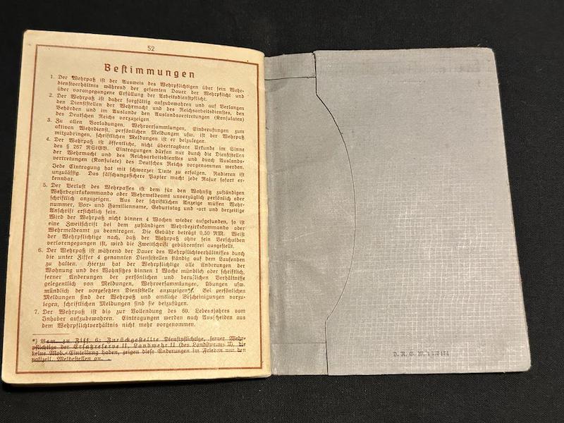 Comments: Super rare to find a Wehrmacht Soldiers Wehrpass born in Africa. Very nice example of a Wehrmacht Wehrpass, with uniform photo.
