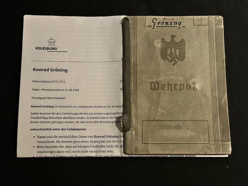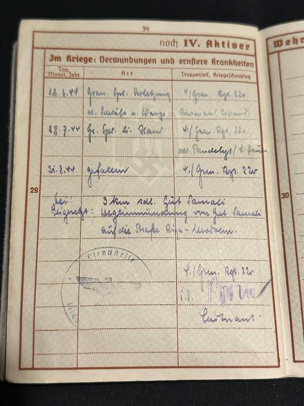 WWII German Wehrmacht Wehrpass – Oberfeldwebel Gröning – Grenadier Regiment 220 (58 Inf Div) – Born in Africa – Killed in Riga Offensive – Ergli 1944 – Super rare Volksdeutsche (Reserved)