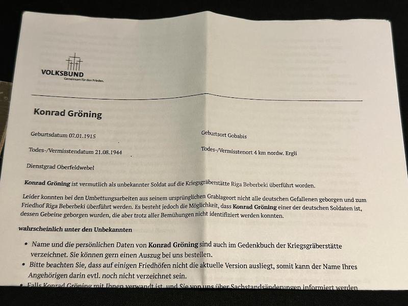 He was killed in the Riga Offensive in August of 1944.