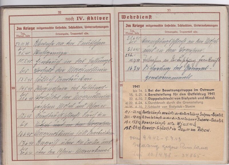 An interesting Wehrpass with a great battle calendar to a real veteran!