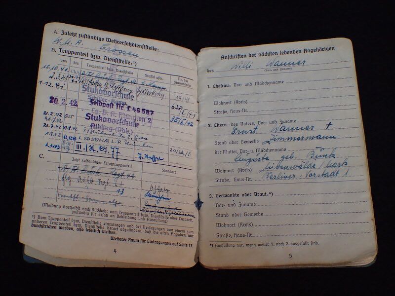WWII Luftwaffe Stuka Pilot Oblt Wanner Soldbuch & Wehrpass Set – Ju 87 D-5 – 189 Missions! – Missing in Action – FFS Gold – Ultra Rare