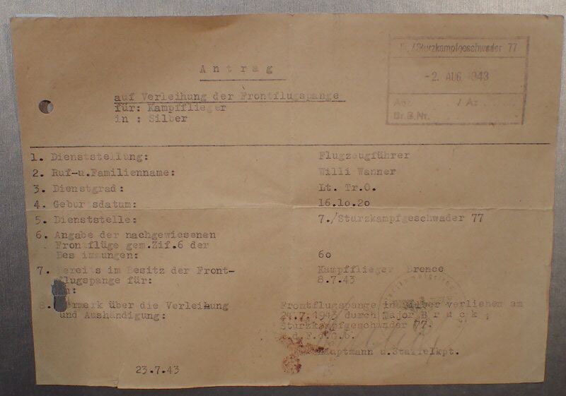 Wanner served with III/ Sturzkampfgeschwader 77Â