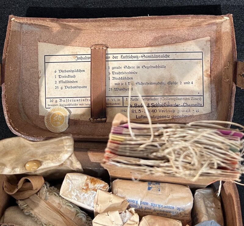 WWII Original German Army Medical Pouch 1941 with Original Contents