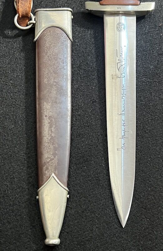 WWII Original SA Dagger Full Rohm Inscription and with Hanger – In Herzlicher Freundschaft Ernst Röhm – US Army GI Bring Back – Rare (Sold)