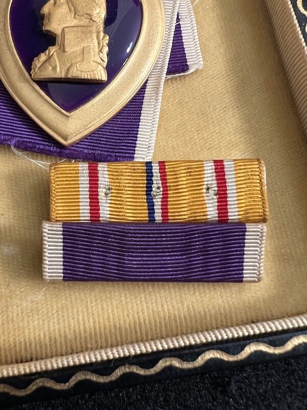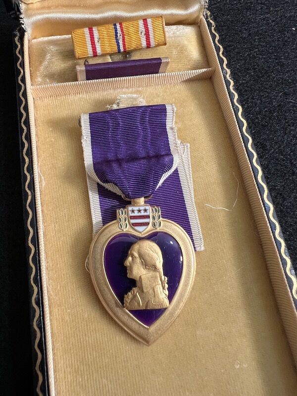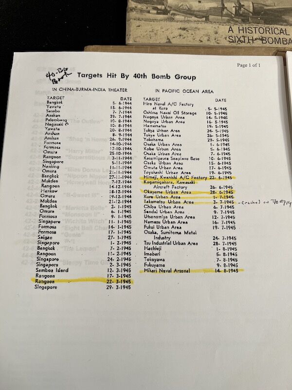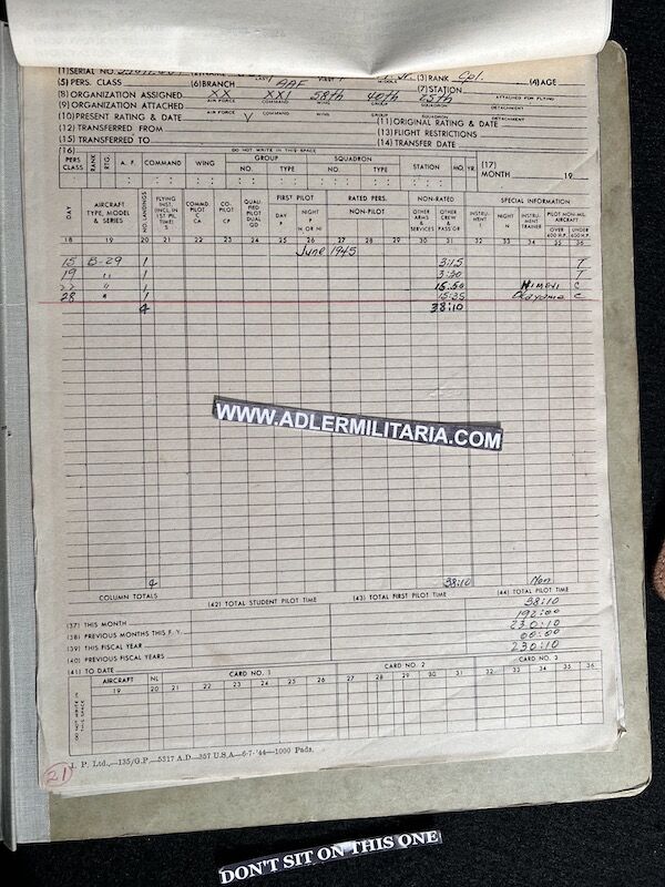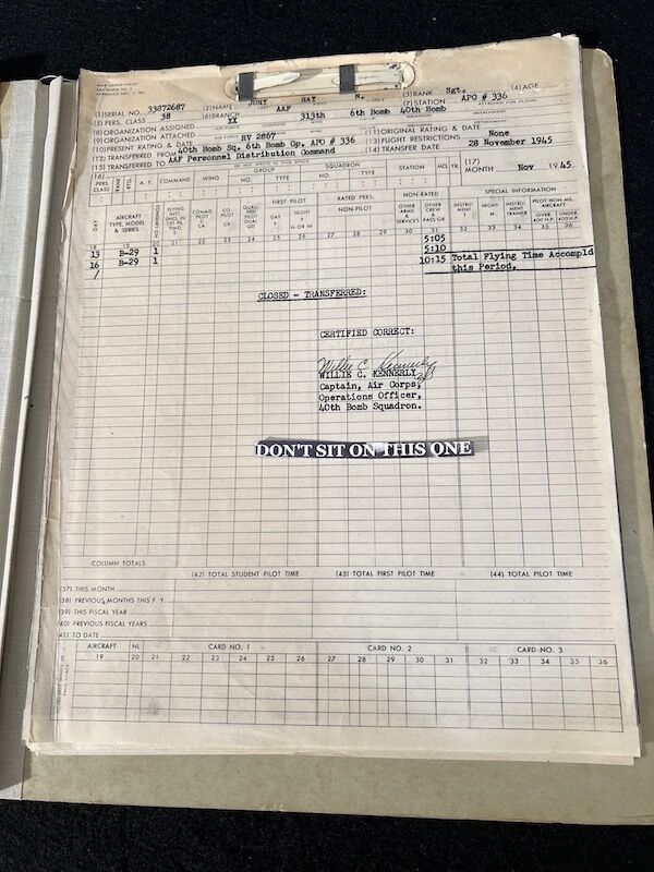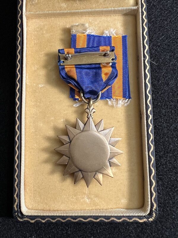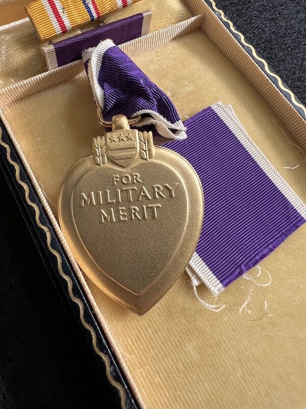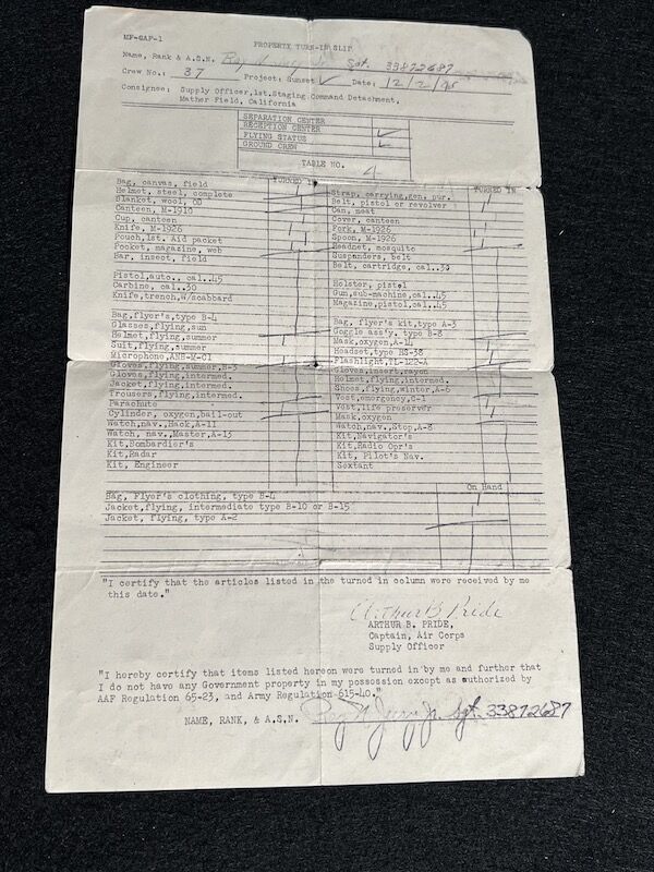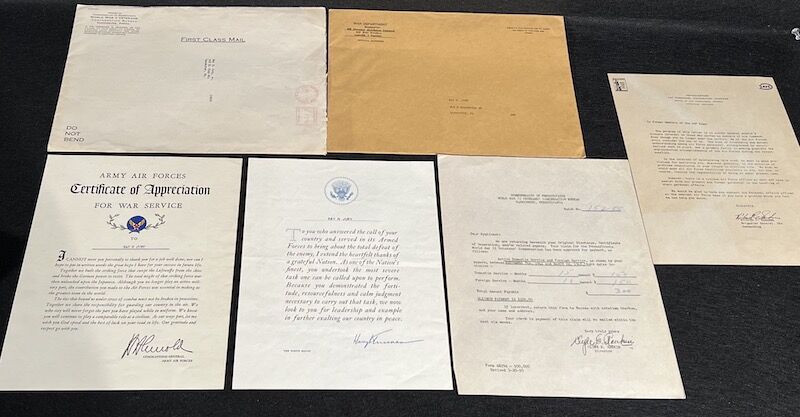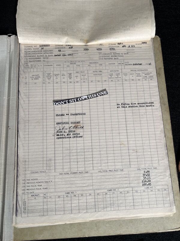The grouping has all his combat flight logs and his blind flying instrument. As well as his Purple Heart and his Air Medal boxed.