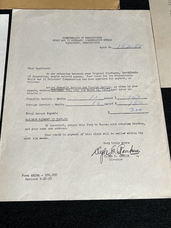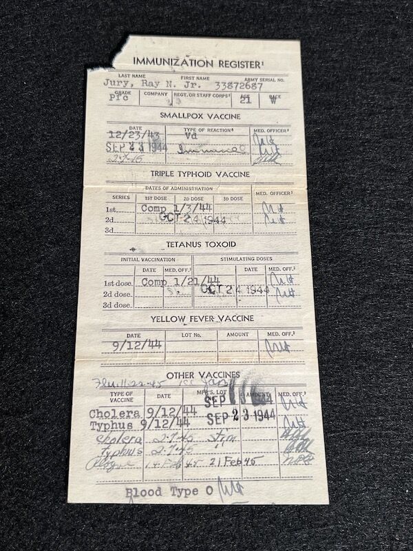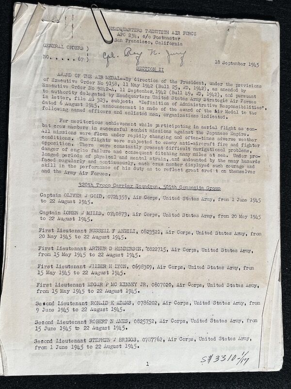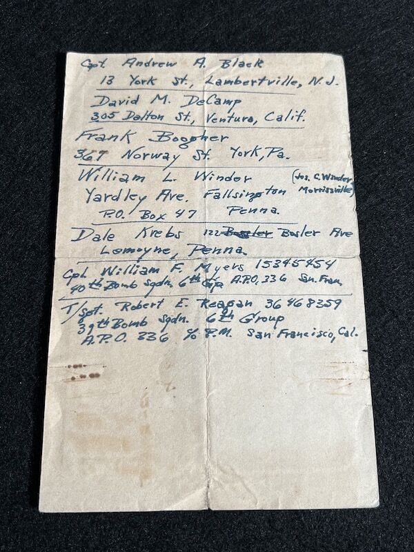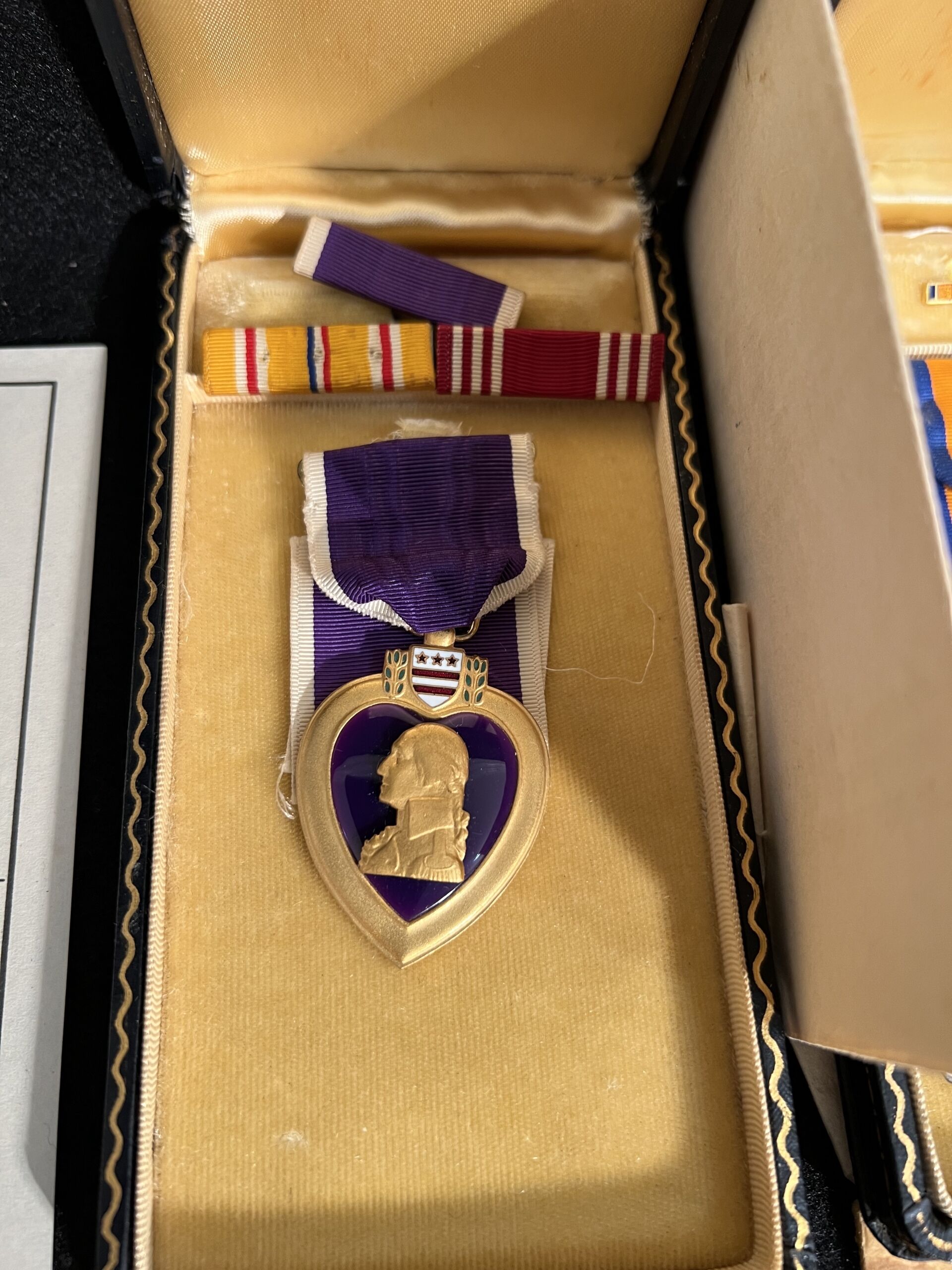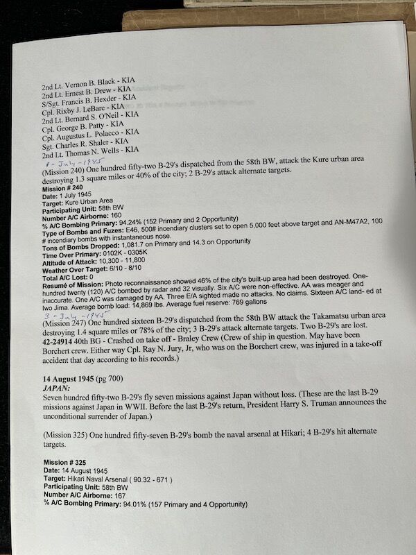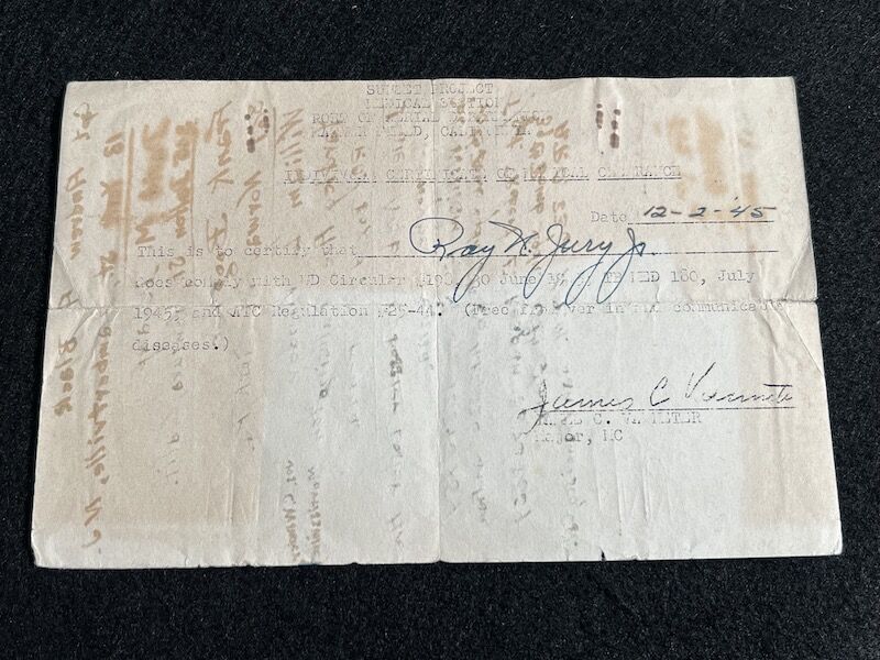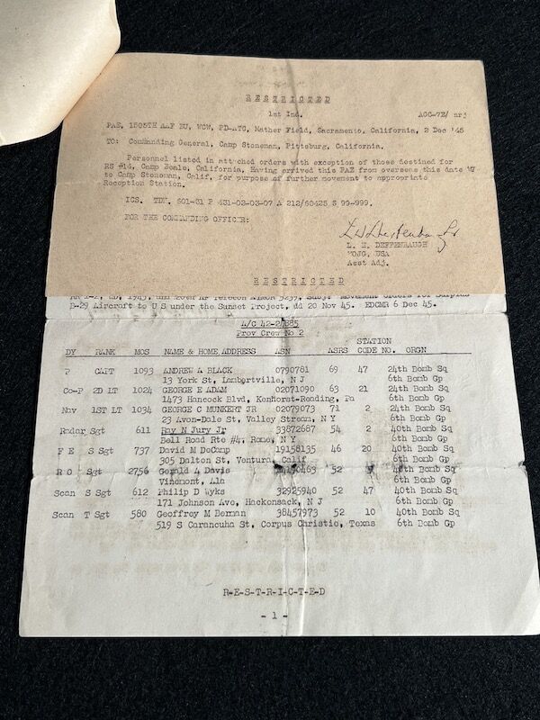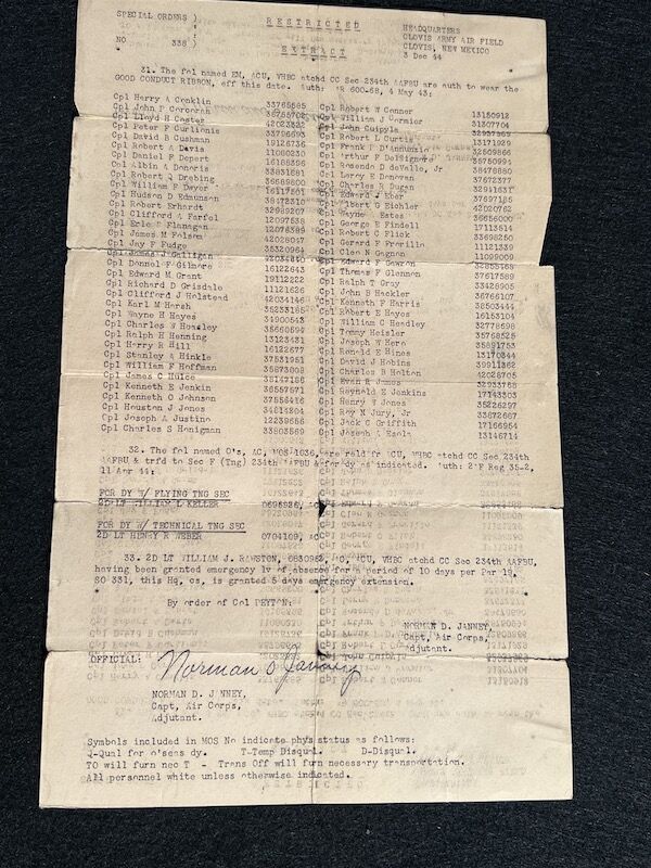 The grouping has all his combat flight logs and his blind flying instrument. As well as his Purple Heart and his Air Medal boxed.