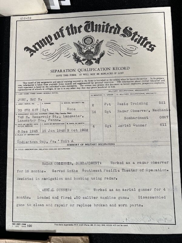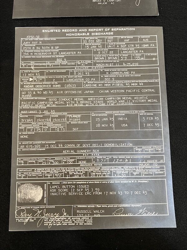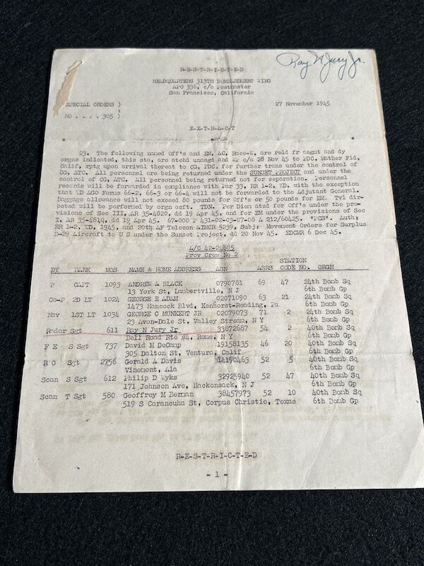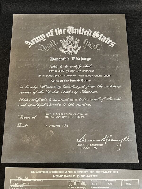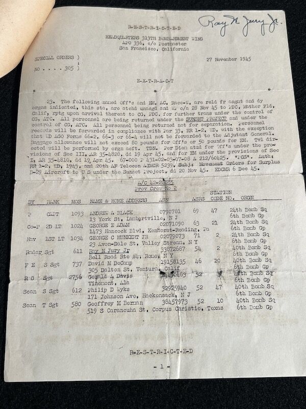 WWII US Air Force B-29 & B-17 Grouping – Gunner and Radar Operator Ray N Jury Jr Purple Heart Sterling Wings Air Medal