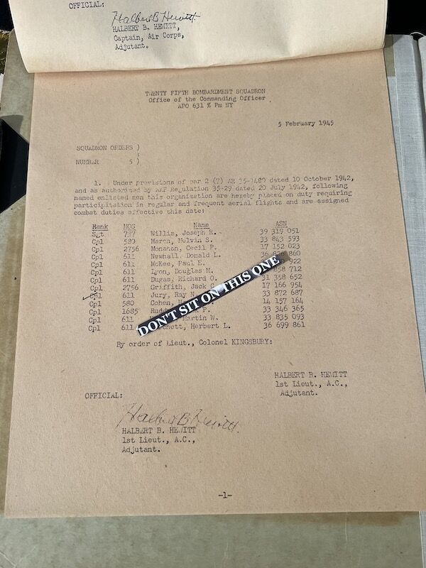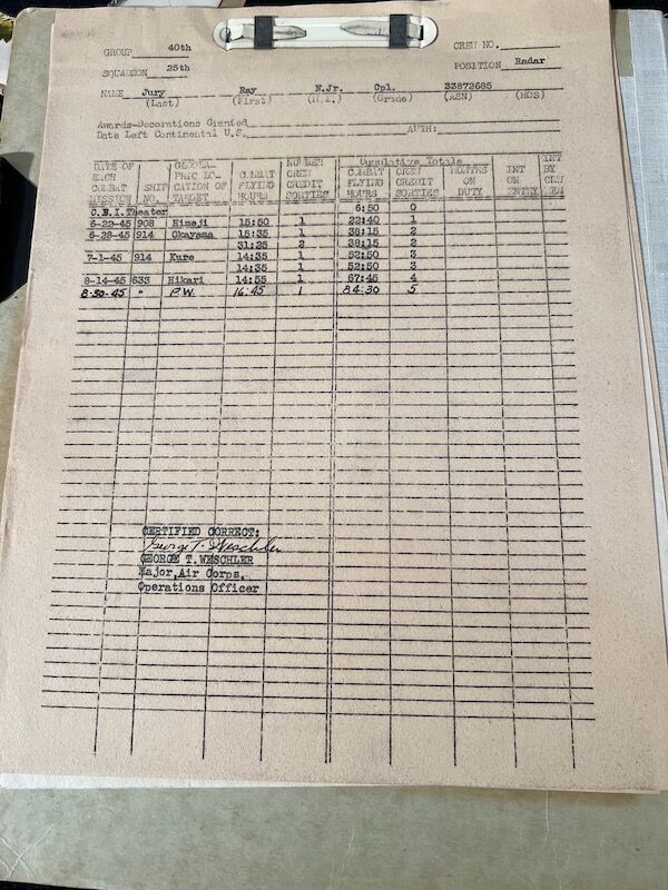 Jury was not only a Radar Operator but would man the 50cal as an air dunner also.