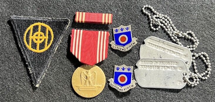 WWII US Army Jewish GI Grouping – Private Harry P Baublitz – 83rd Infantry Division – Wounded Pistol Bullet Leg Normandy France 1944 – Wounded with Shrapnel Ardennes 1944 – Rare