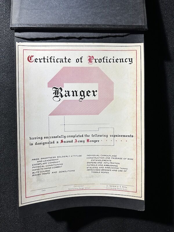 On page one, an empty certificate that General Lear would have signed for those that passed the Ranger School of the Second Army.