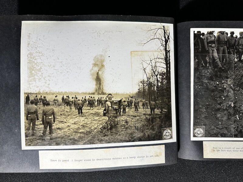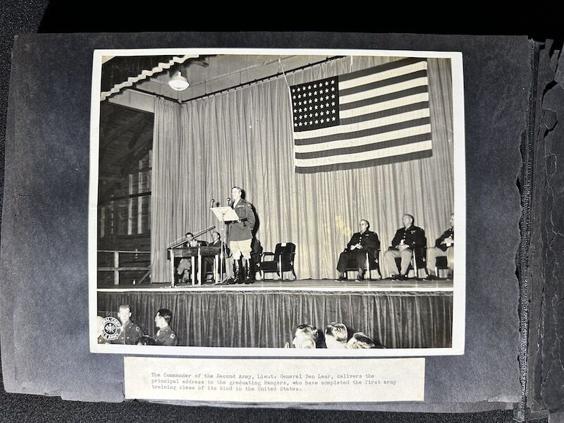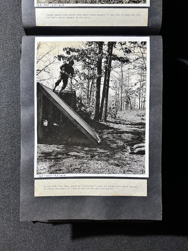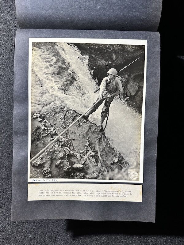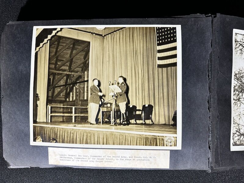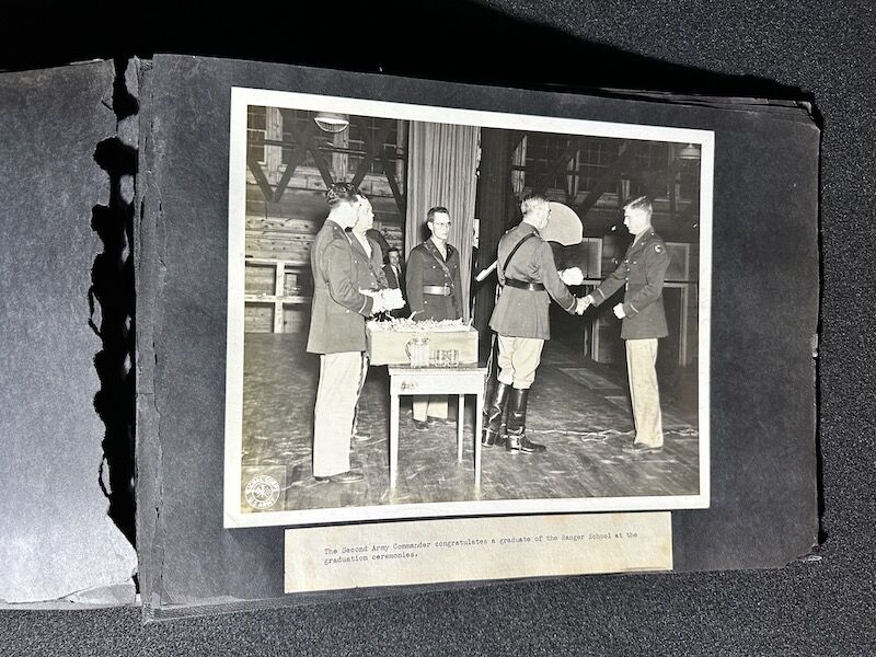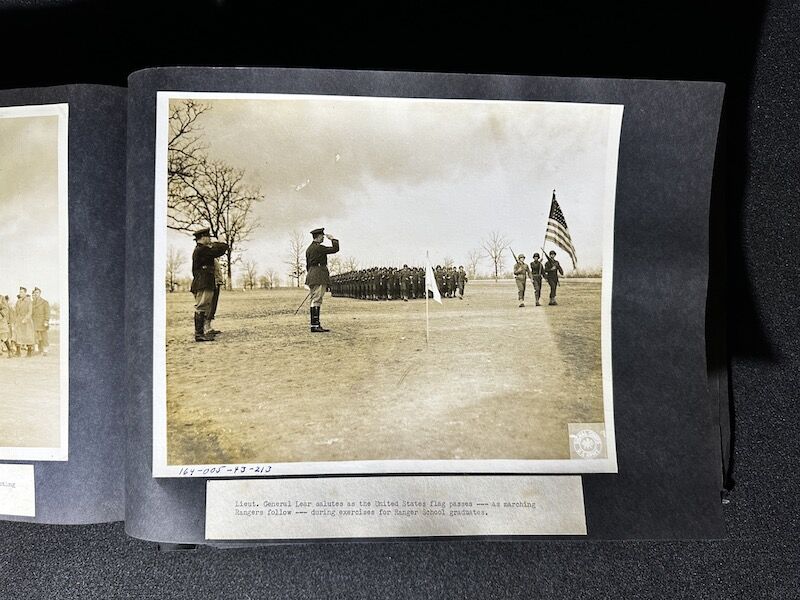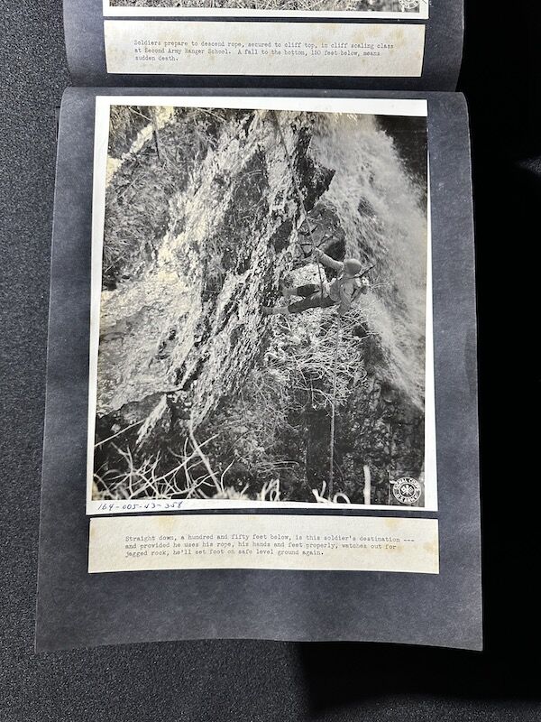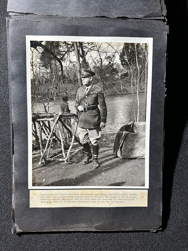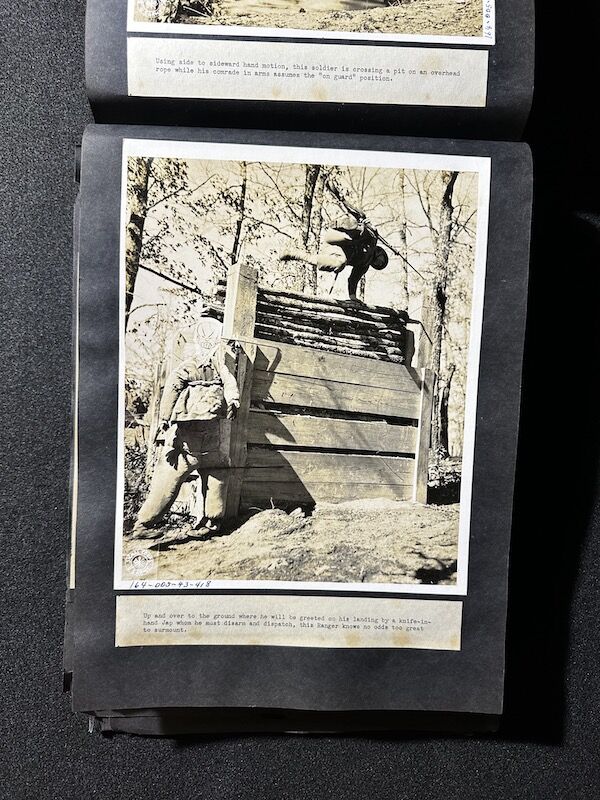 The unique photo album depicts what is listed on the certificate, each photo is described neatly. The album was likely a gift to the General from the Ranger School.