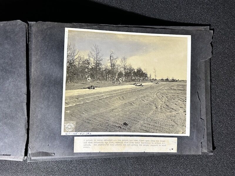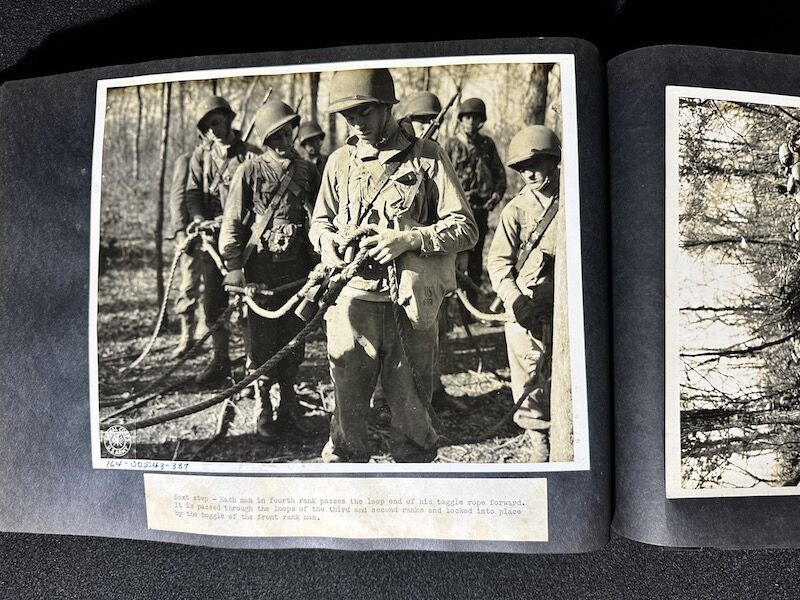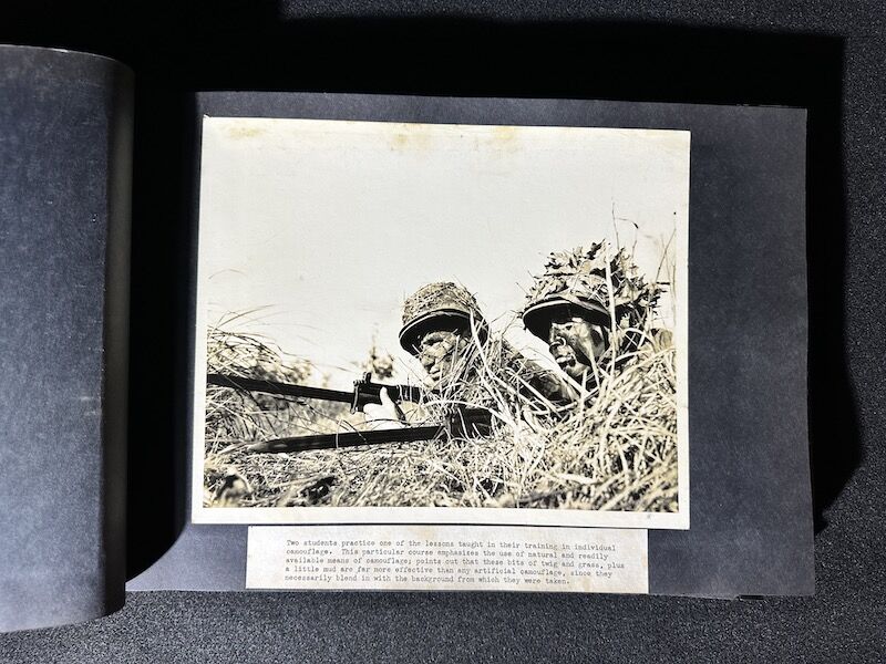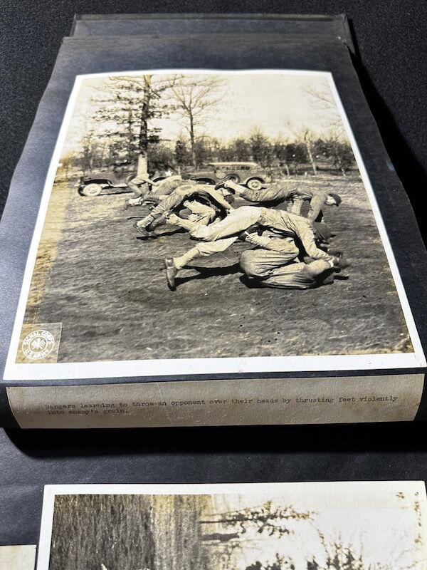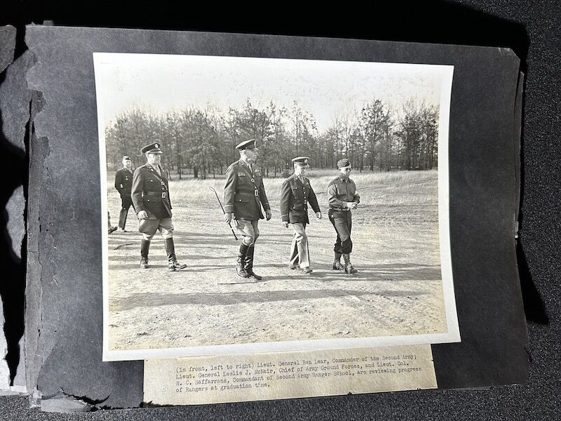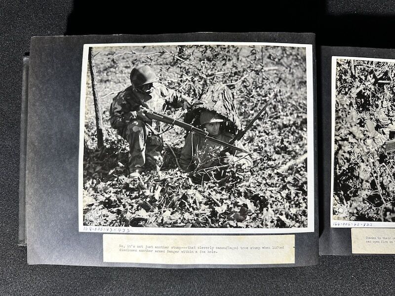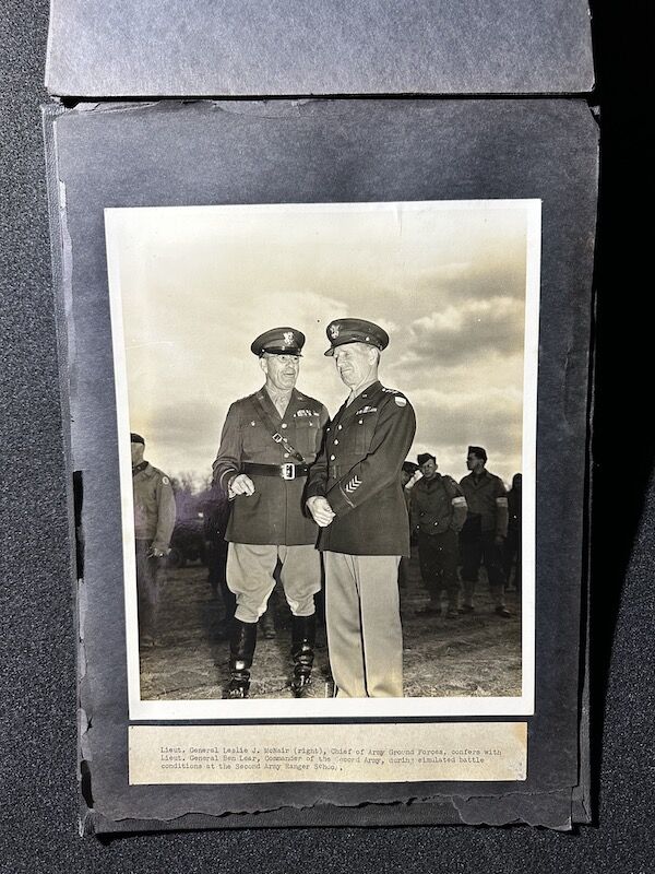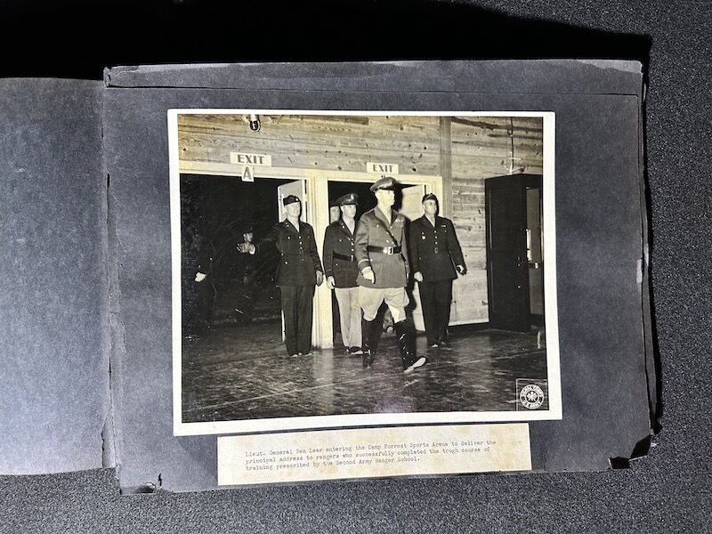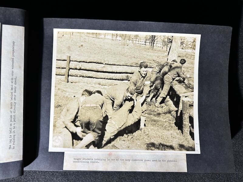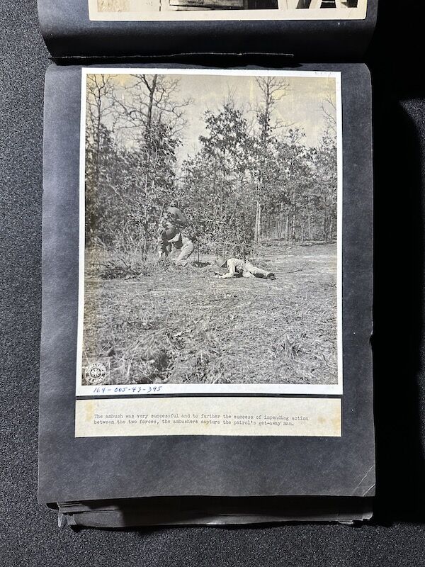 The unique photo album depicts what is listed on the certificate, each photo is described neatly. The album was likely a gift to the General from the Ranger School.