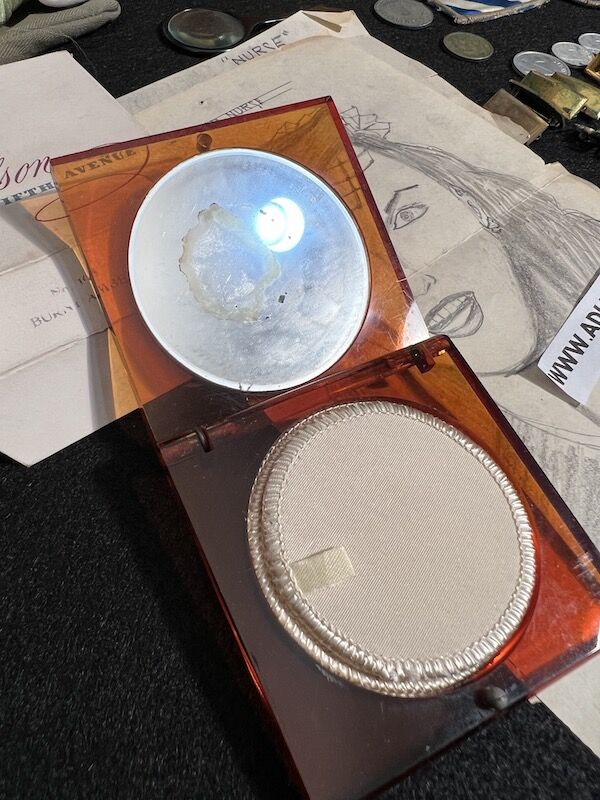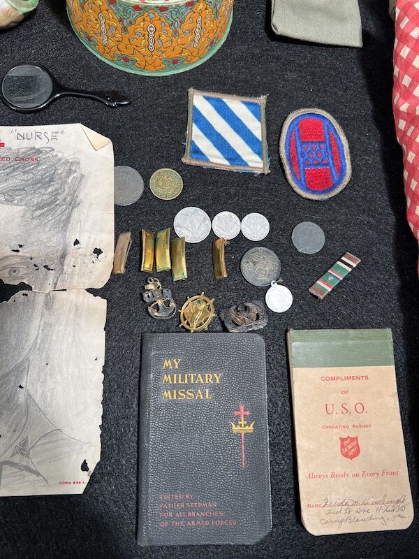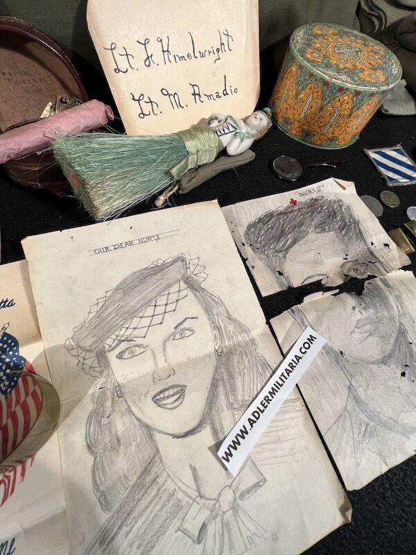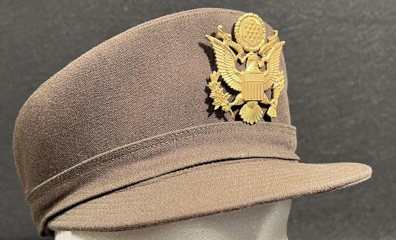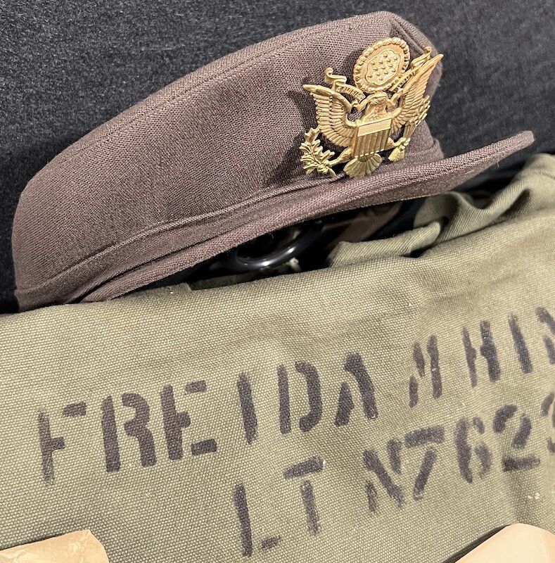 This collection of her military uniforms, hats, documents, and ephemera tell the story of a WAC Women’s Army Corps Nurse who served in the European Theater of Operations with the United States 7th Army. Highlights of the collection are her extensive uniform grouping to include two Field Service Uniform Jackets one chocolate brown WAC Service Uniform with Advanced Base & 7th Army SSI Shoulder Patches, 1st Lieutenant Rank Insignia, Army Medical Corps Nurse N Branch Lapel Insignia, and Ribbons; additionally, the English Tailored WAC Coat and Nurse Officers WAC Service Hat.