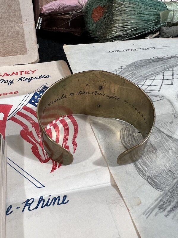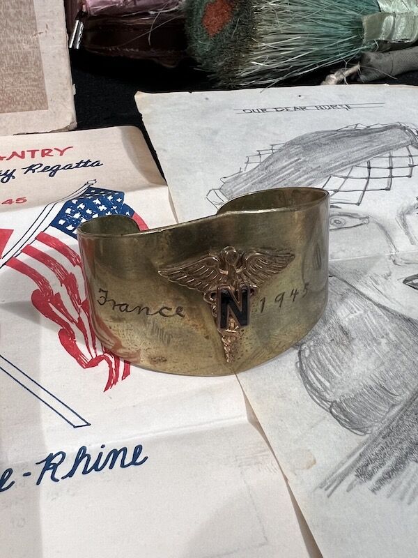 Exceptional Personal ID Identification Bracelet France 1945 with Army Nurse Corps Branch Insignia and Custom engraved and numbered interior to Freida Himelwright.
