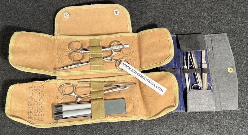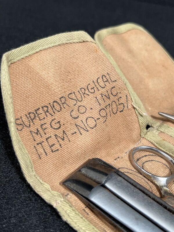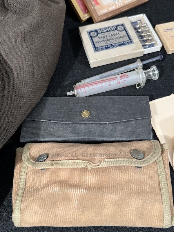 Medical Officers Cases, Canvas Case by ‘Superior Surgical’, Surgical Instruments Assortment, Glass Syringes, and Spare Needles