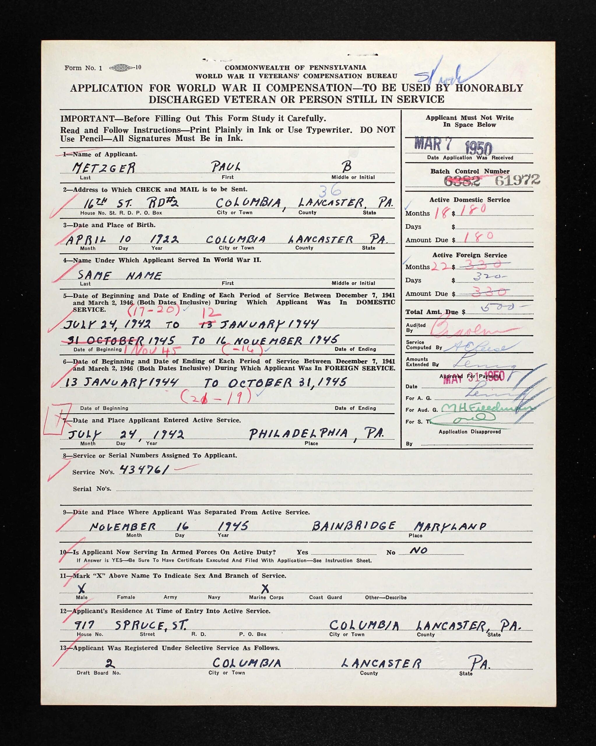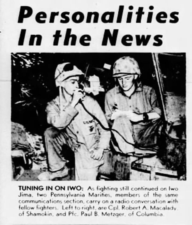 Metzger was with M company, 3rd battalion, 3rd Marines for Bougainville and Guam, The Agana Race Riot in Guam and then he was transferred to the 21st Marines in 1945 for Iwo Jima.