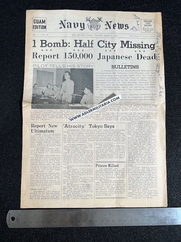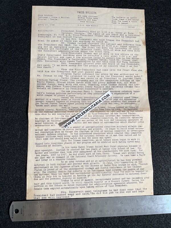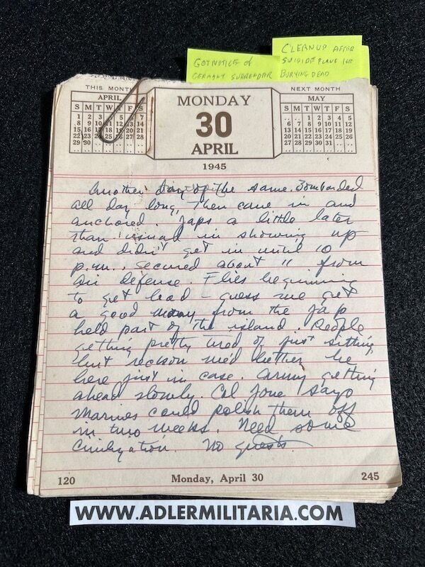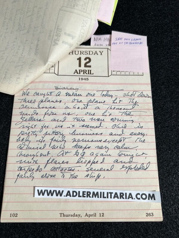 WWII US Navy Estate – Flag Officer to Admiral Raymond Spruance – Fifth Fleet 1944/1945 – USS Indianapolis – Kamikaze Piston – With Diary – Original ‘Raising the Flag on Iwo Jima’ by Joe Rosenthal – Ultra Rare Museum/Archive Grade (Request further details)
