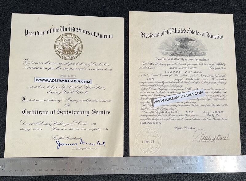 One of a kind and personal U.S. Navy Archive of Lt. Cyrus Huie, USNR