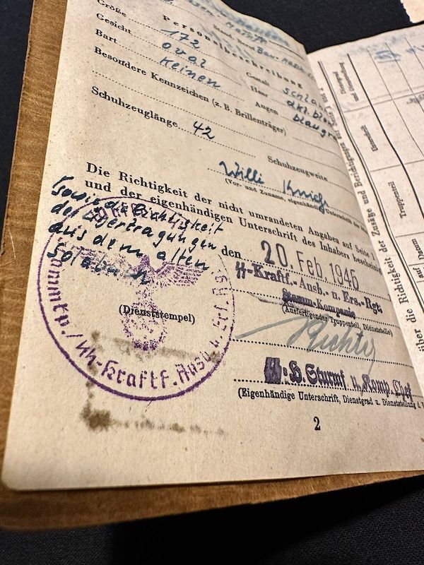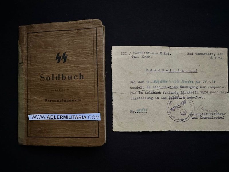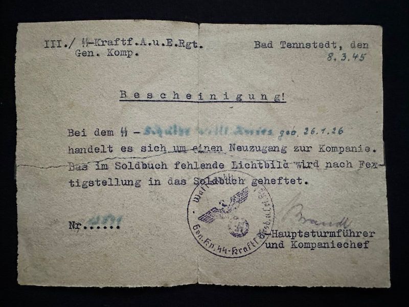 March 1945 – he is in Bad Tennstedt with the SS Kraftfahr Regiment , Gen.Komp.