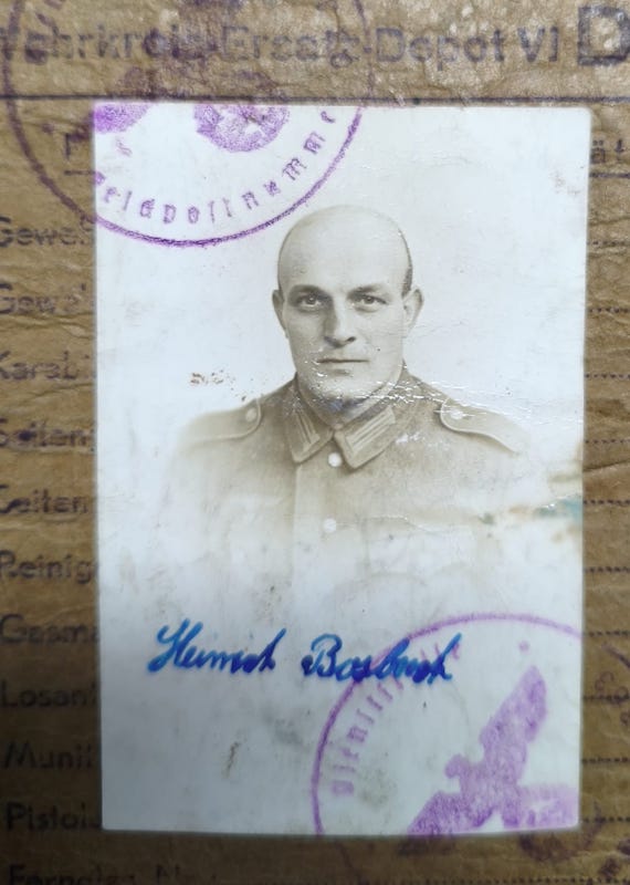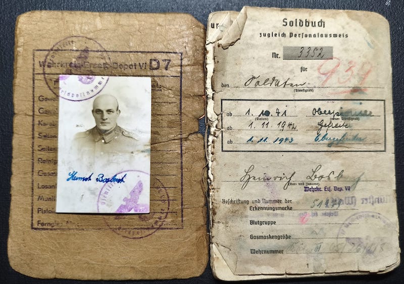WWII Wehrmacht Soldbuch – Obergefreiter Heinrich Bosbach – Ost Batl 618 (Russisch) 15th Armee in Pas de Calais – Destroyed in Normandy 1944 – Rare!
